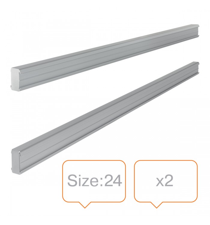 En aluminium anodisé naturel. Livrés par paires pour sécuriser vos bandes planning en haut et en bas. Les bandes planning s'emboîtent dans les rails. 2 bandes de titre incluses. Couleur : argent. Indice 24.