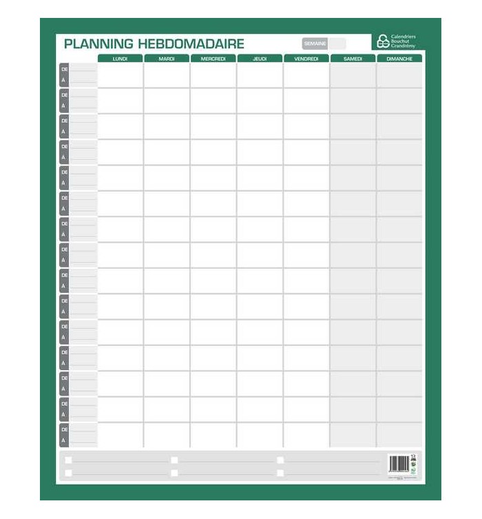 - Organisation heure par heure sur 7 jours pour une gestion précise de vos plages horaires