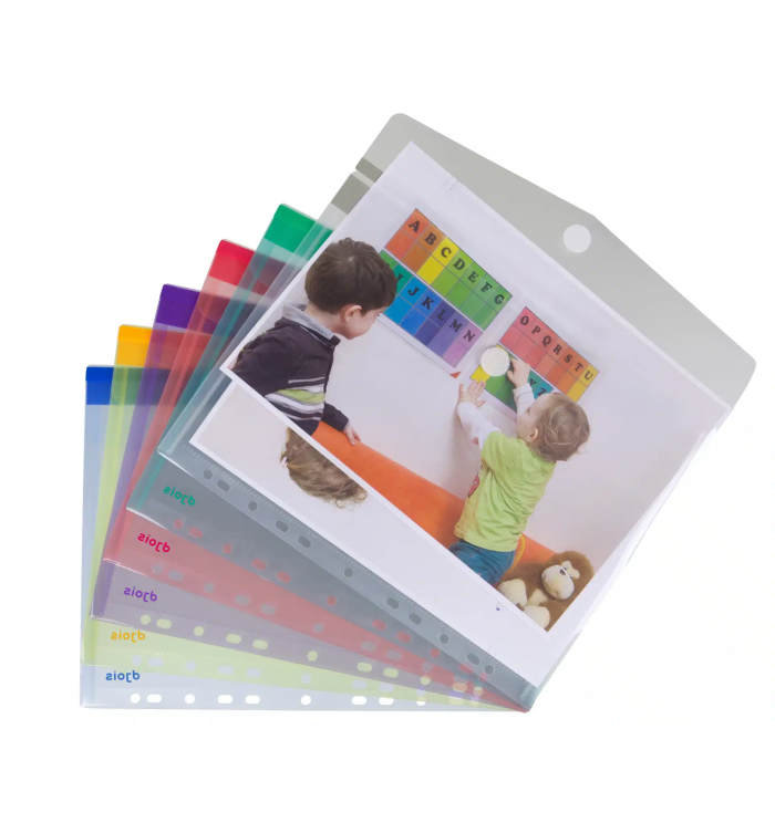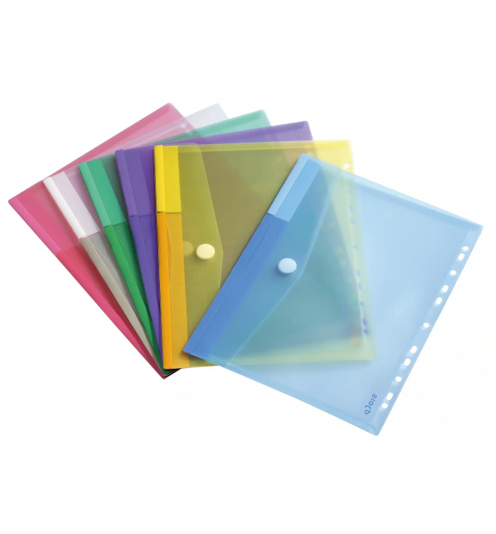ENVELOPPE FOURRE-TOUT A4 PERF COUL TRANSP ASS SACHET DE 12