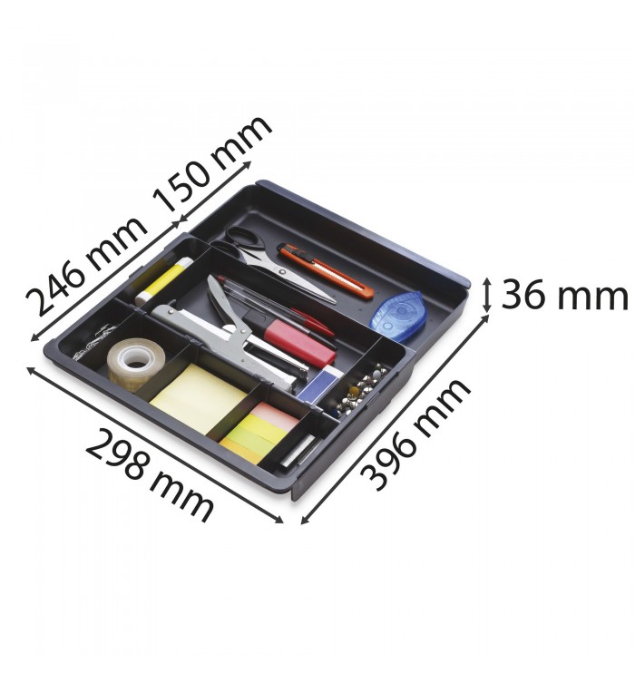 Le drawinsert est compatible avec des tiroirs dont la largeur est comprise entre 246 et 396 mm.