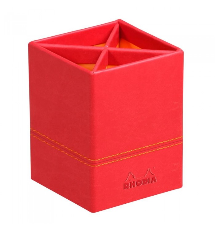 Optimisez l'Organisation de Votre Espace de Travail avec le Pot à Crayons Simili Cuir Rhodiarama Coquelicot