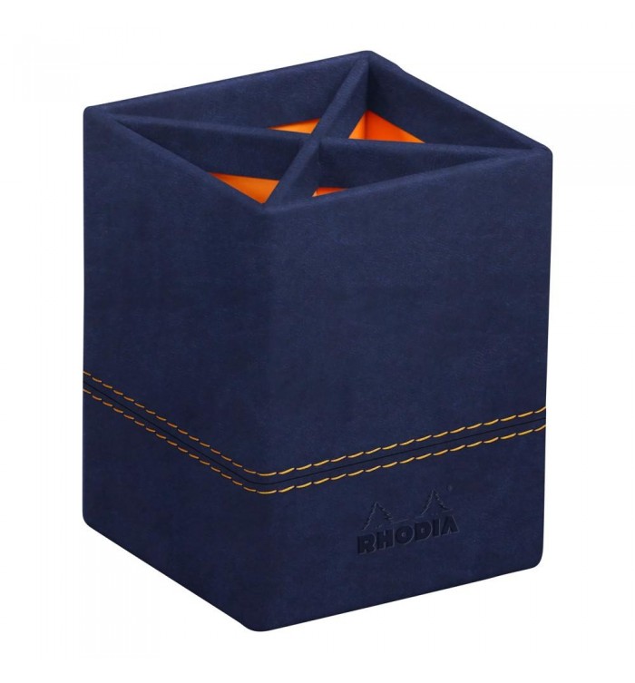 Pot à Crayons Simili Cuir Rhodiarama Bleu Nuit pour un Bureau Élégant
