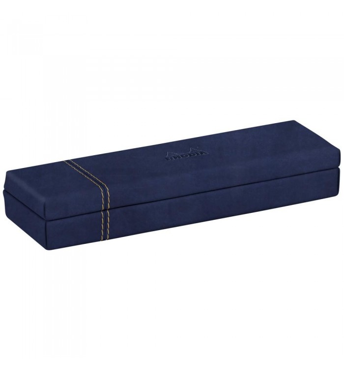Conçu en simili cuir italien, ce plumier assure une touche de sophistication à votre bureau. Les finitions soignées incluent un logo Rhodia embossé et des surpiqûres sellier orange, ajoutant une dimension esthétique et professionnelle. Sa couleur bleu nuit s'intègre harmonieusement dans tout environnement de travail.