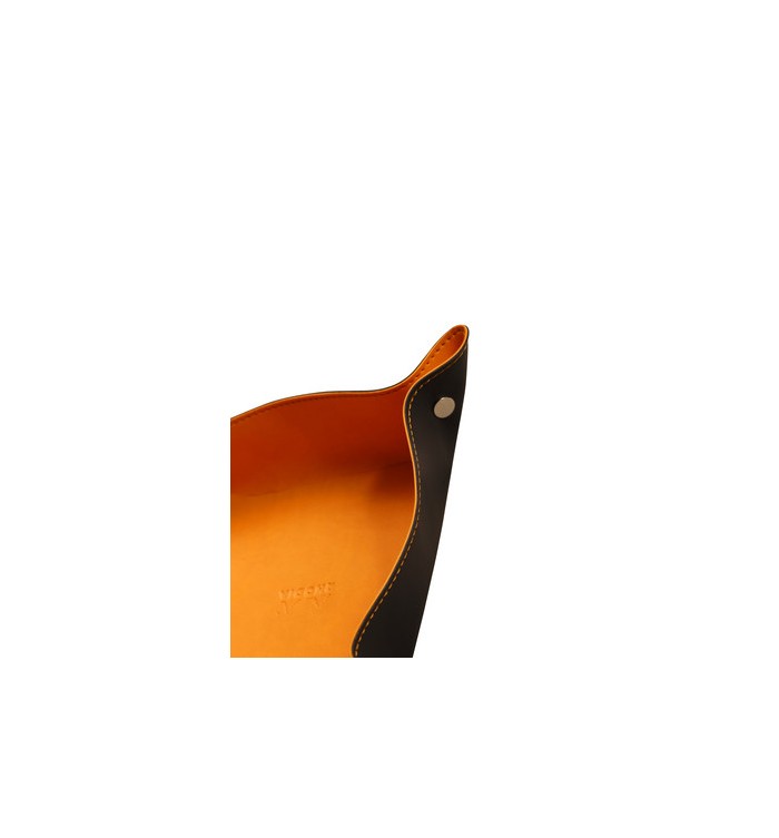 Le logo Rhodia embossé et les surpiqûres sellier orange apportent une touche unique au vide poche simili cuir Rhodiarama noir, soulignant son élégance et son attention au détail. Ces caractéristiques en font un choix privilégié pour les entreprises cherchant à allier style et fonctionnalité.