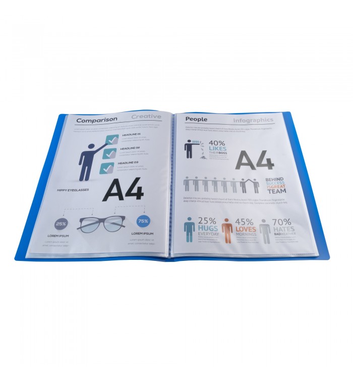 En couverture polypropylène souple structuré mat, antitache et anti-rayure, le porte-vues Opak, appelé également protège-documents ou reliure est un produit économique pour usage quotidien.