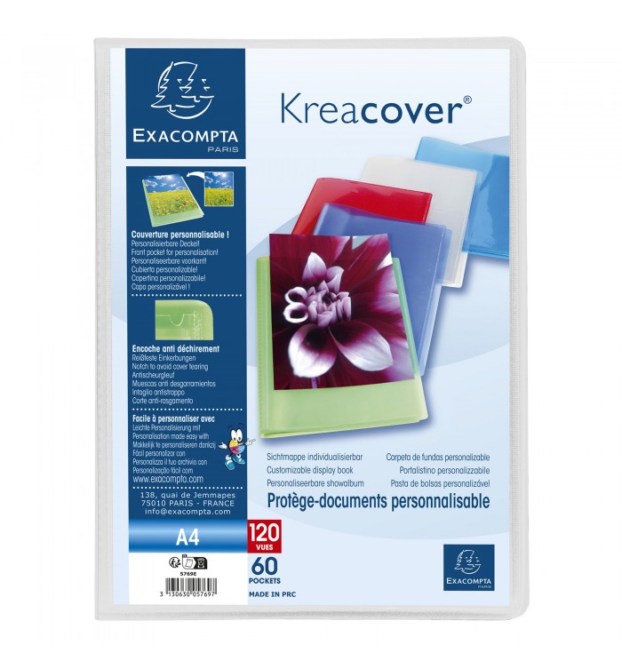 Kreacover®, la gamme de classement qui reflète votre image, simple reflet du contenu ou projection personnelle, le classement devient support de votre style. Une pochette de personnalisation en première de couverture. Pochettes cristal lisse haute transparence.