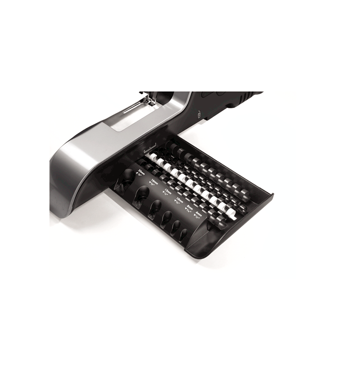- Tiroir malin avec sélecteur d'anneaux et d'épaisseur de document pour sélectionner rapidement la taille des consommables