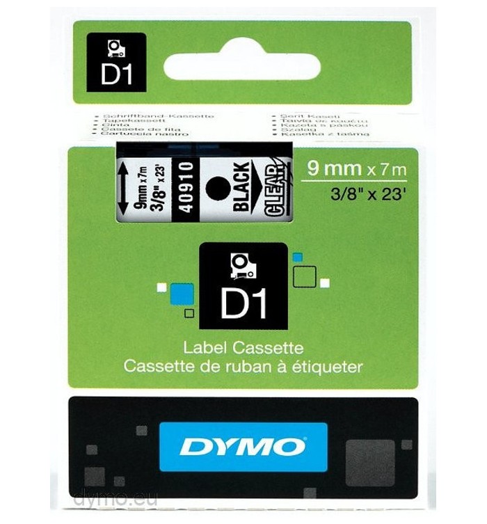 RUBAN TITREUSE DYMO 9mm NOIR/TRANSPARENT/382579