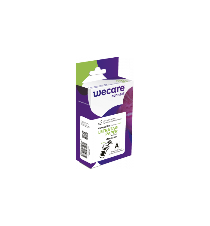 Pack 2 Rubans laminés - S0721510 - consommable étiqueteuse WECARE - 12MM*4M - Noir/Blanc