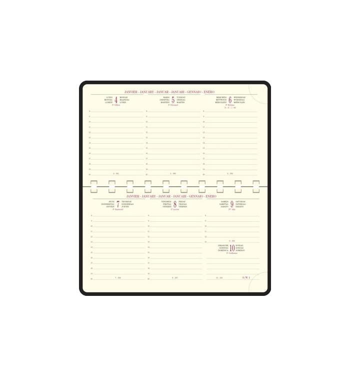 - Tranche dorée et coins détachables pour un accès rapide à la semaine en cours