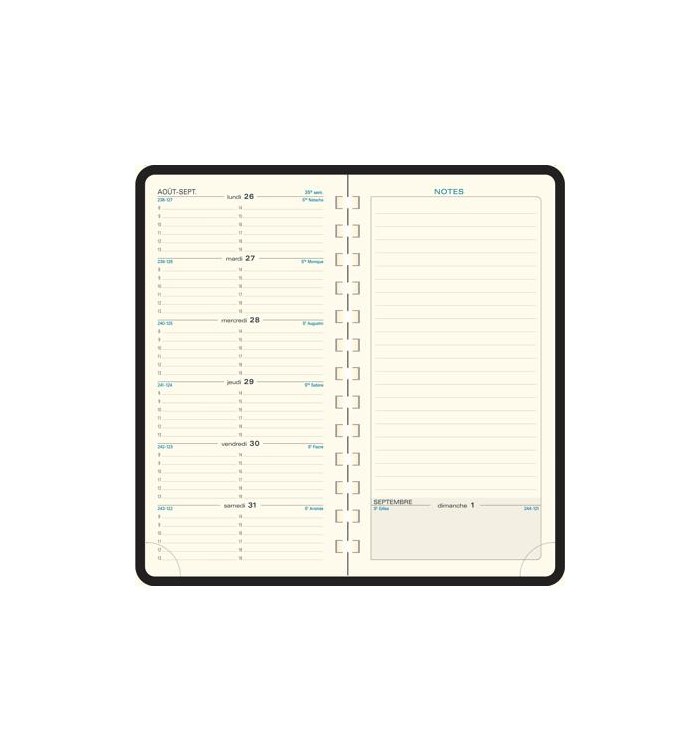Optez pour l'agenda semainier format poche Espace 17S spiralé et bénéficiez d'un outil de qualité, fabriqué en France, pour une organisation professionnelle au quotidien.