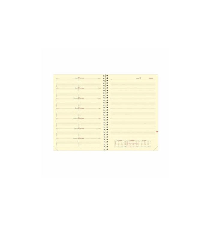 - Agenda hebdomadaire avec une présentation de la semaine sur la page de gauche et une page de notes sur la droite pour un usage 2-en-1 agenda/carnet