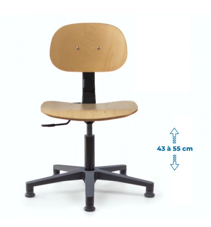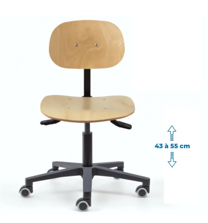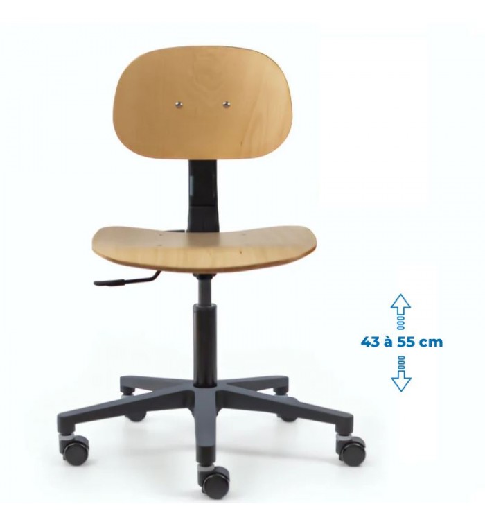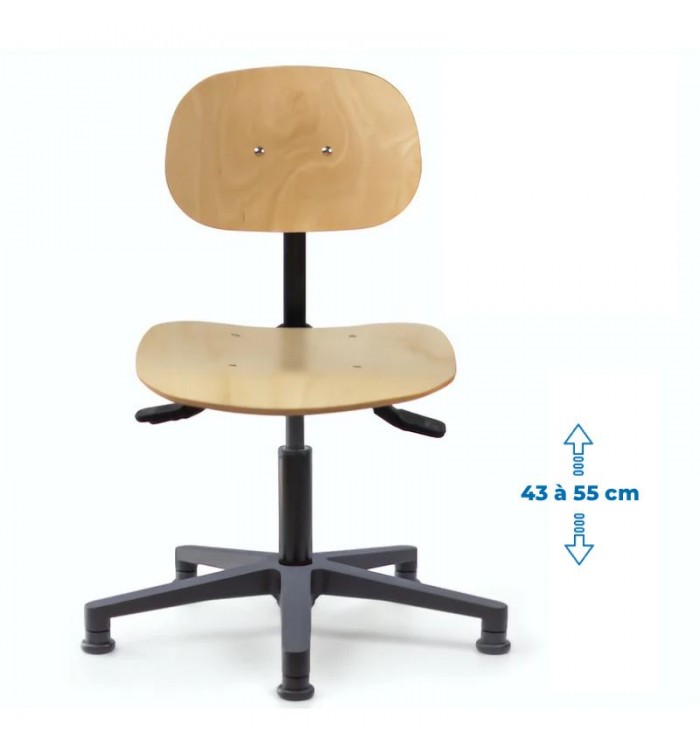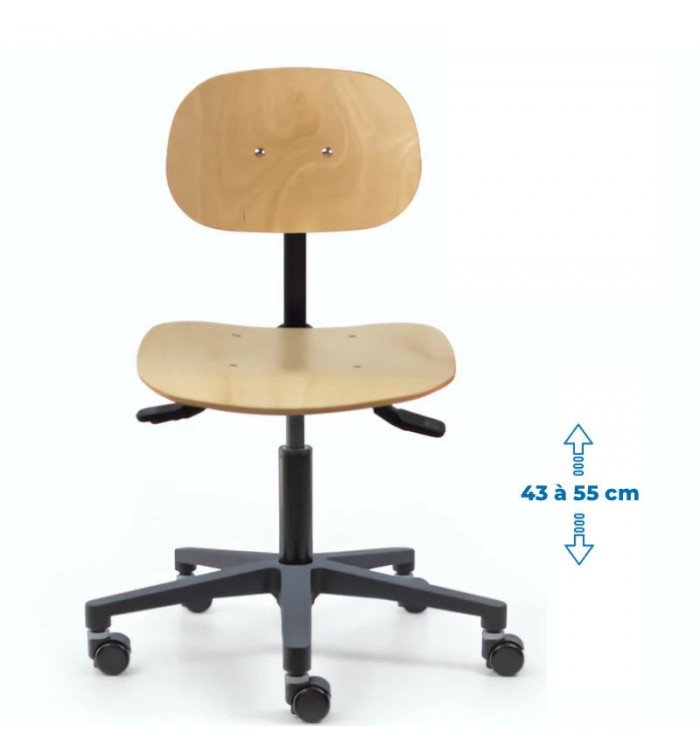 Le siège d'atelier BAKA assise bois est la solution idéale pour les ateliers et environnements de travail exigeants. Son assise en bois et son dossier fixe réglable en profondeur offrent un soutien optimal lors de longues heures de travail.