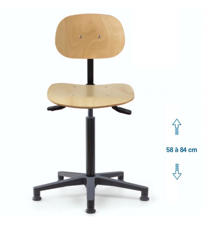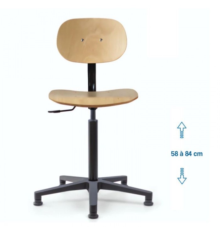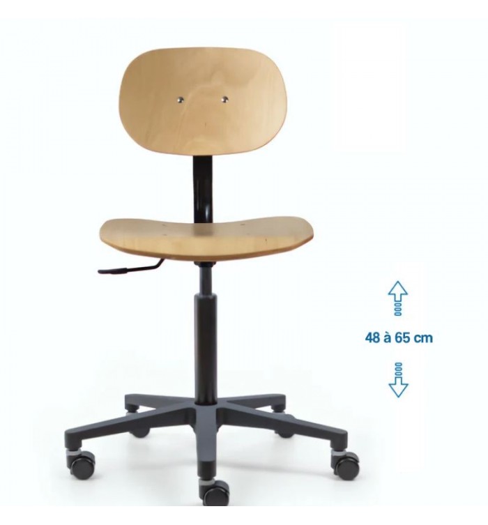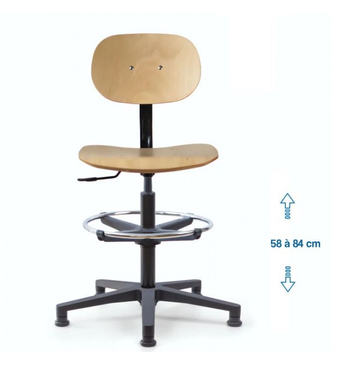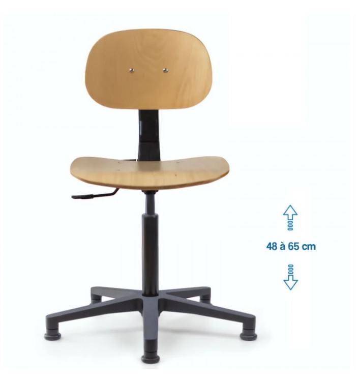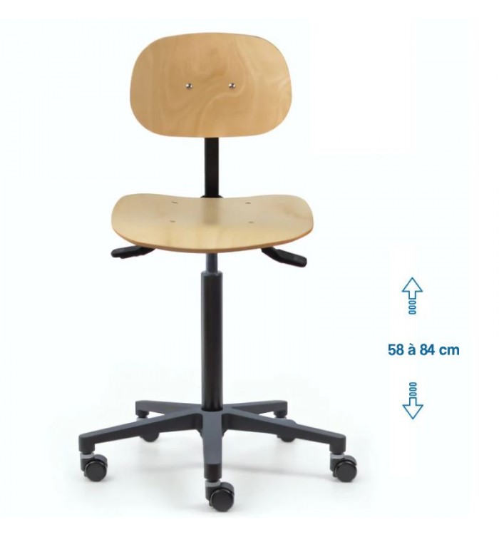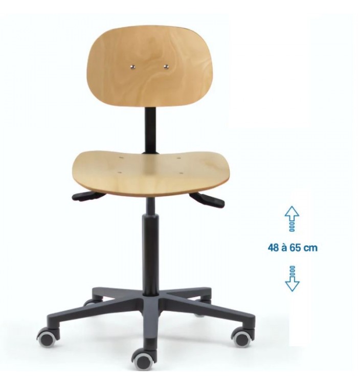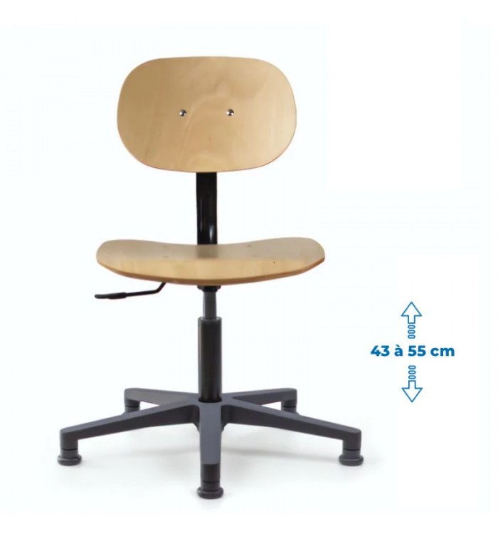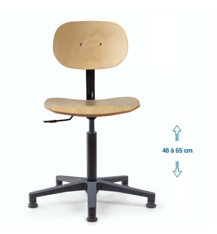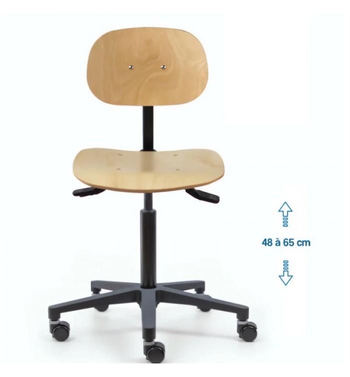 Siège d'atelier BAKA avec assise en bois : confort et robustesse pour les professionnels