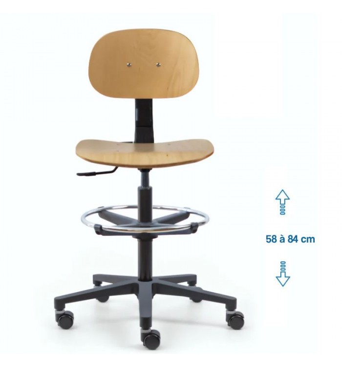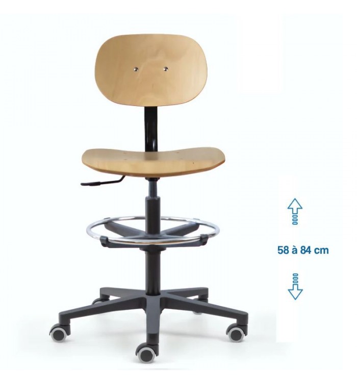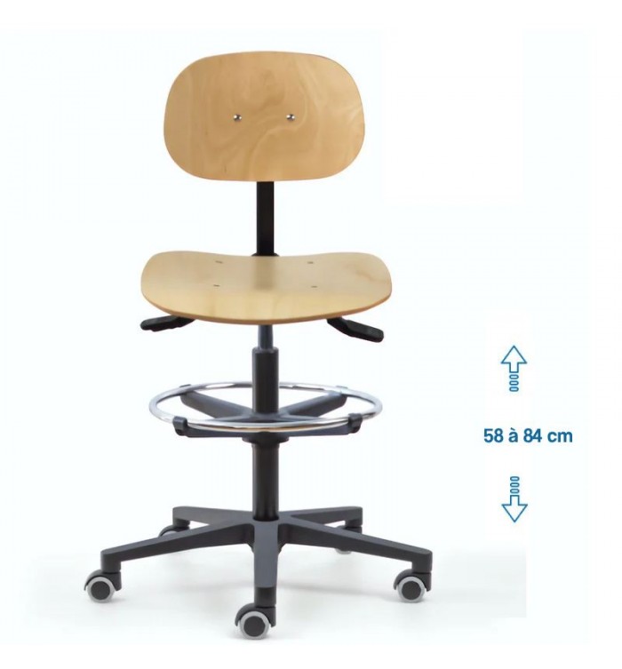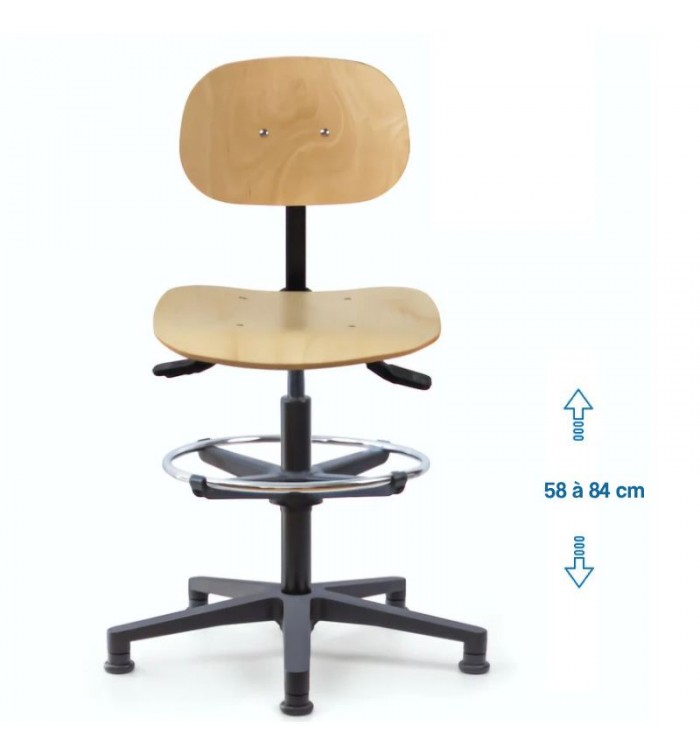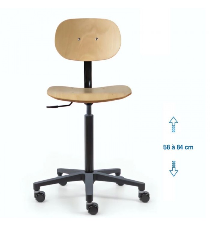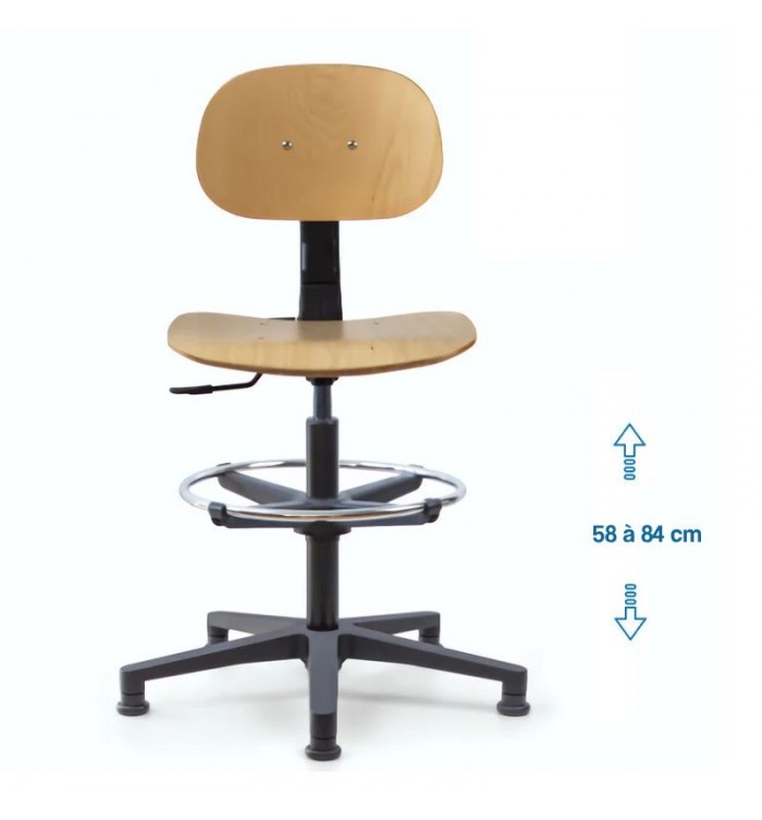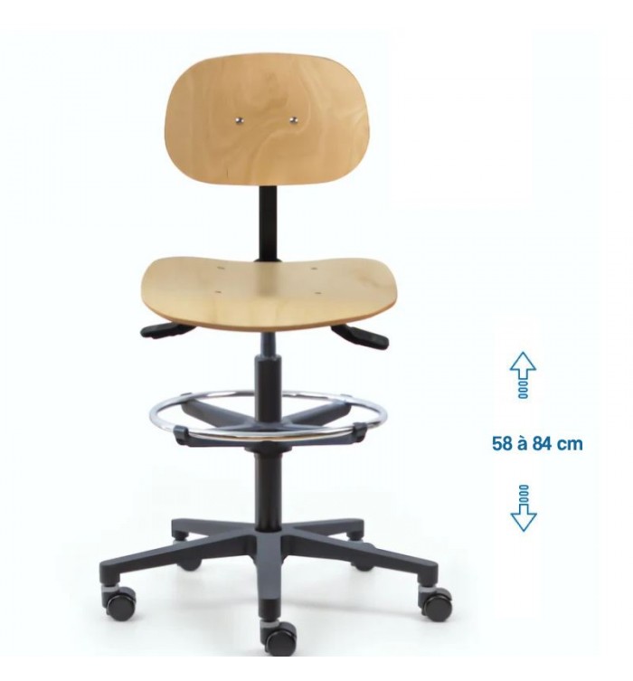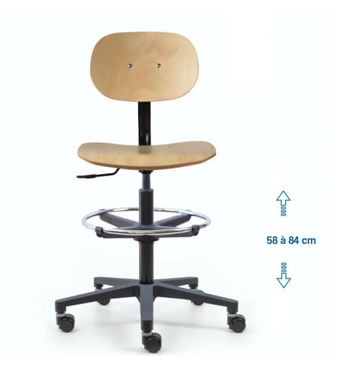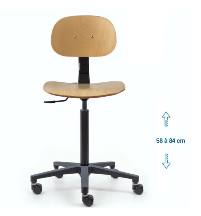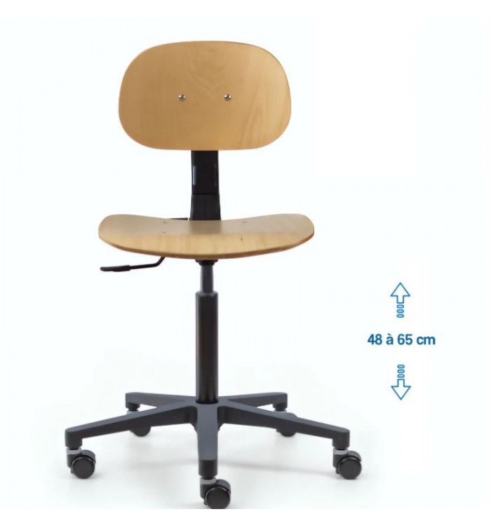Siège d'atelier BAKA avec assise en bois : confort et robustesse pour les professionnels