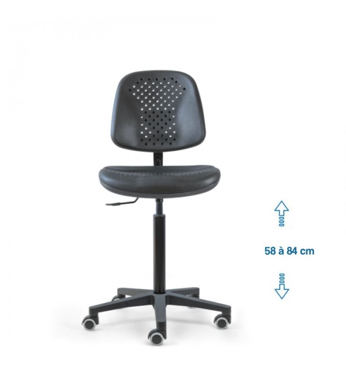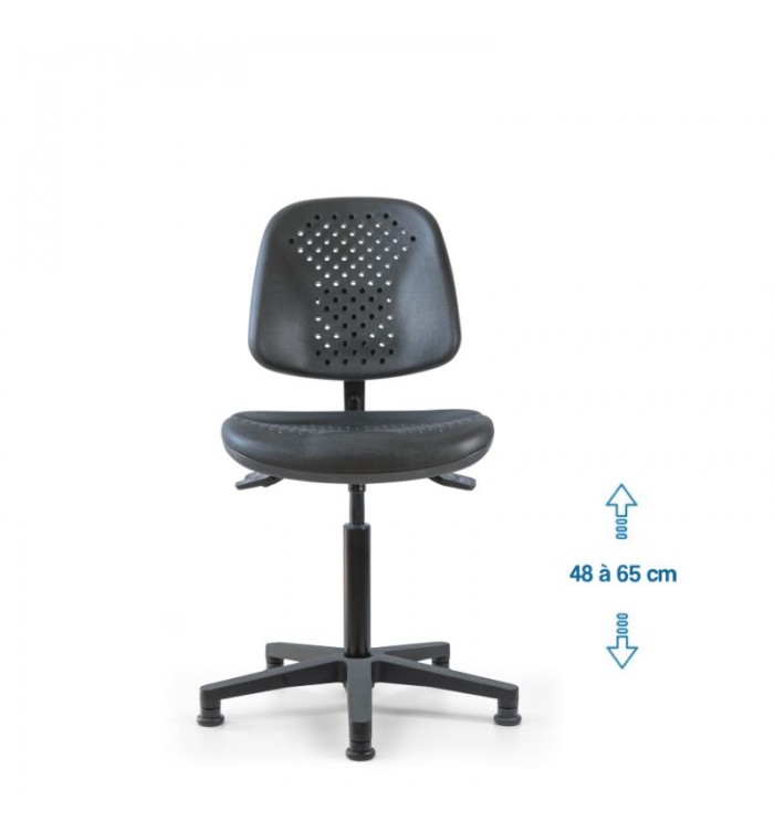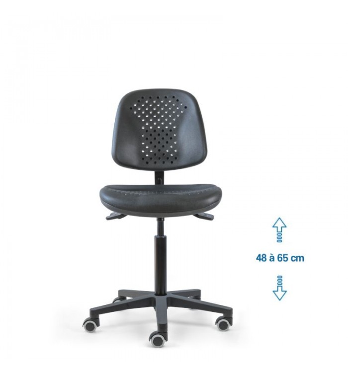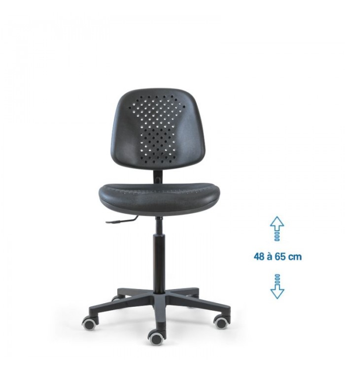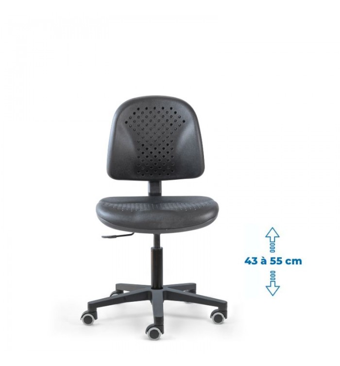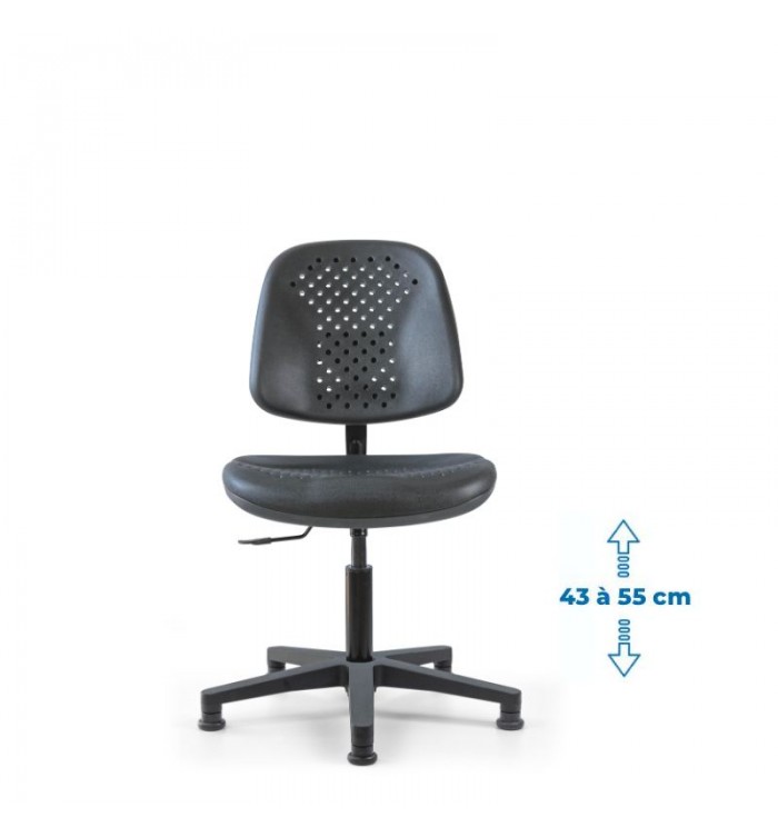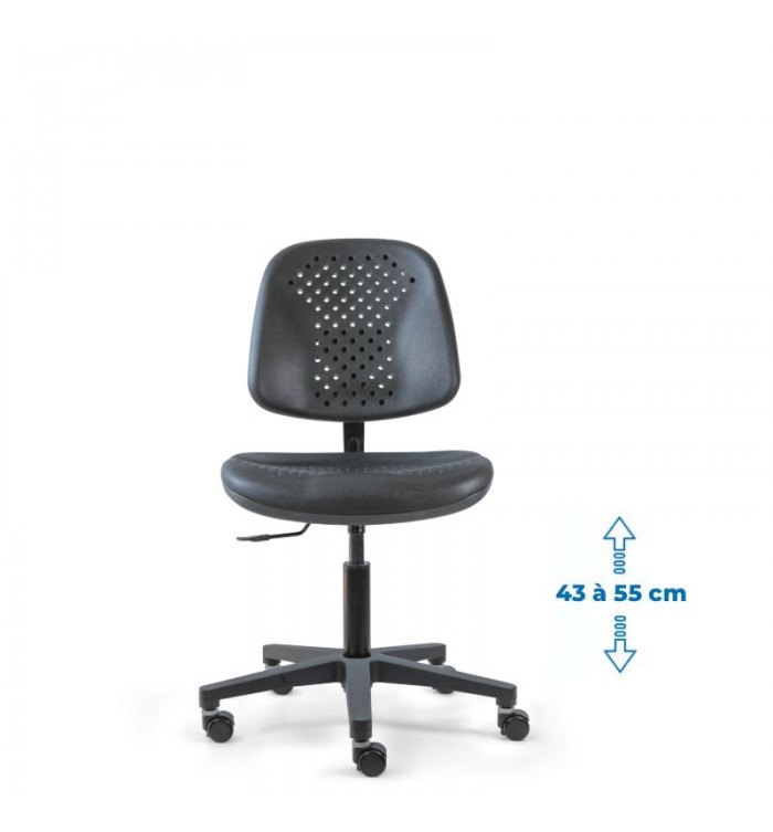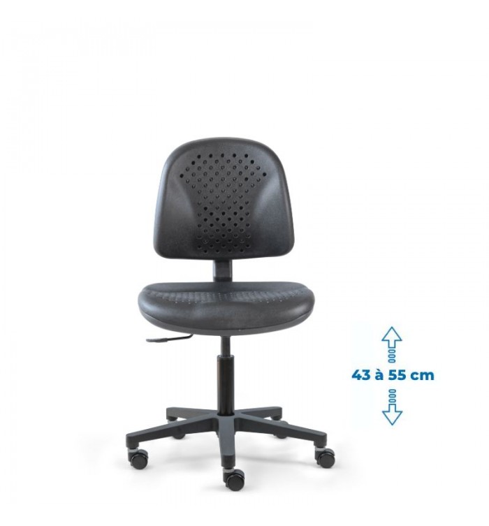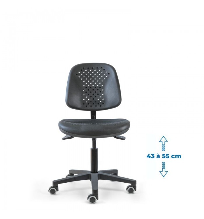 Conçu pour s'adapter à divers contextes professionnels, le siège d'atelier SWET est idéal pour les ateliers, bureaux et autres espaces de travail. Grâce à son revêtement en polyuréthane noir perforé, il garantit une résistance optimale, tout en étant anti-transpiration et facile à entretenir. Parfait pour des conditions de travail intensives, ce siège assure un confort durable.