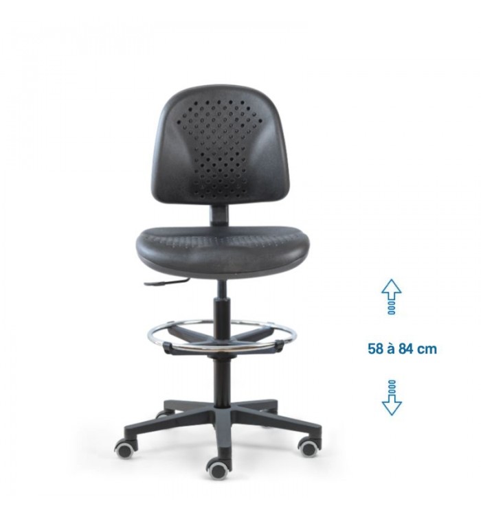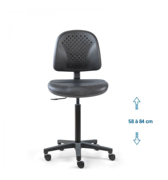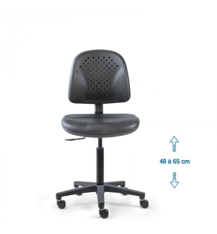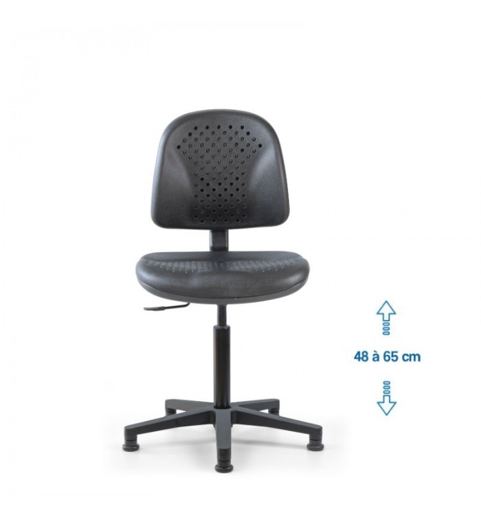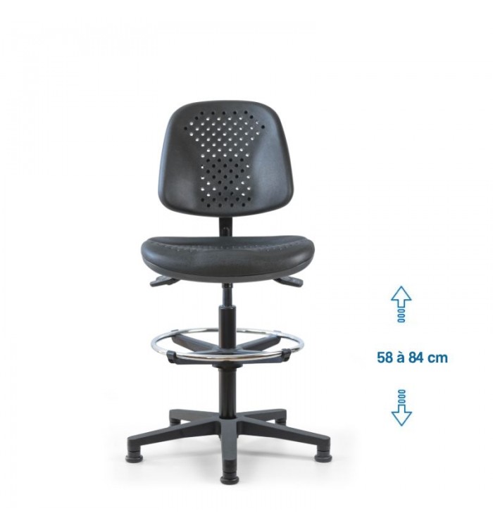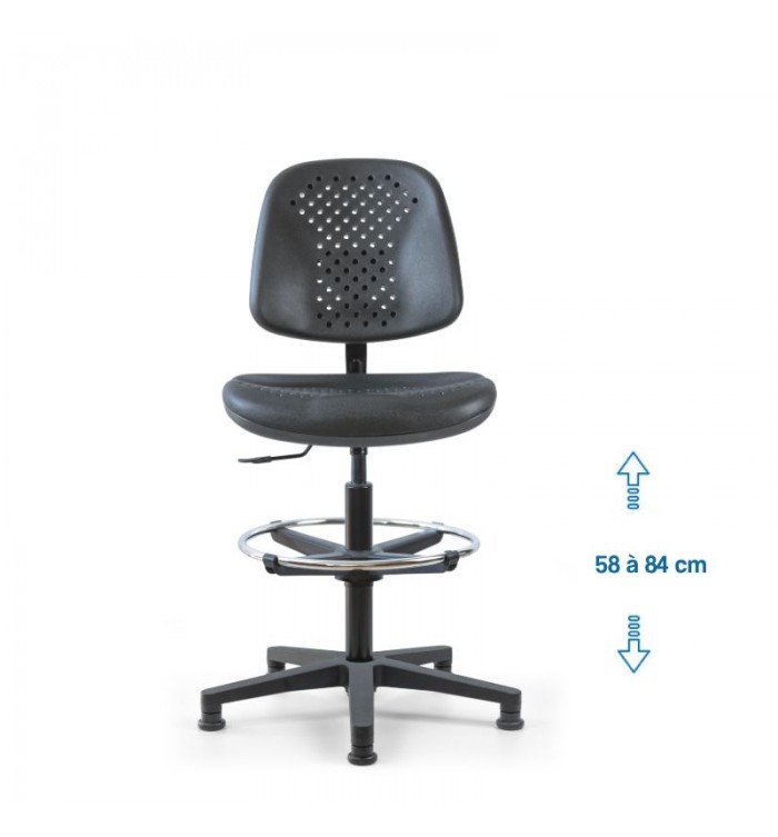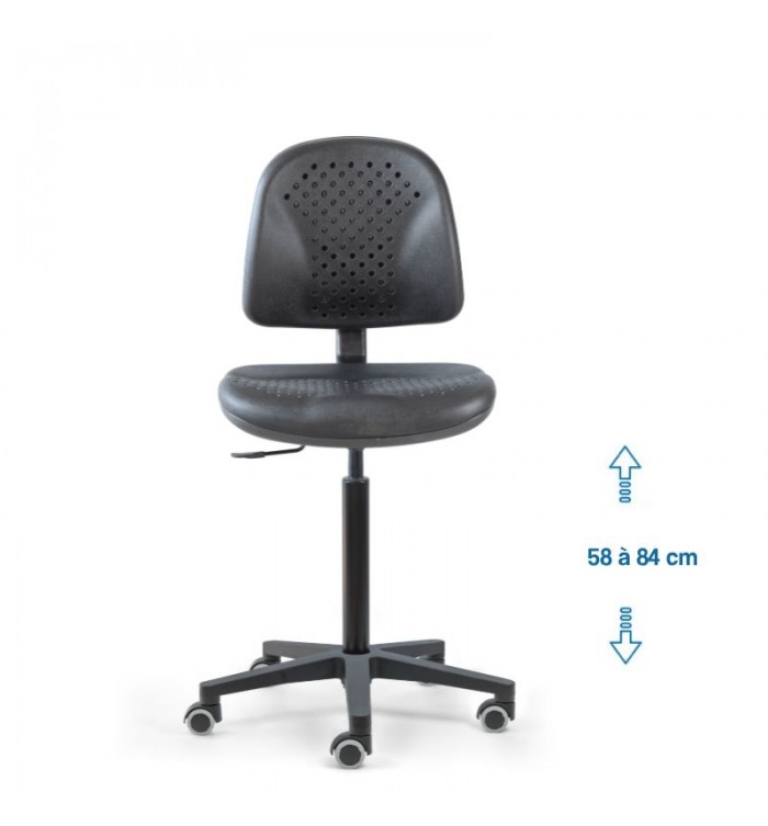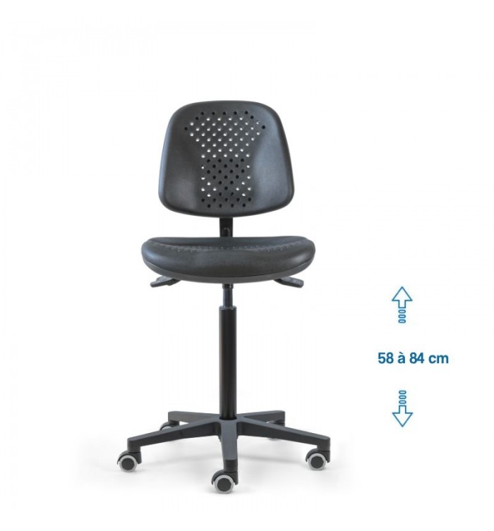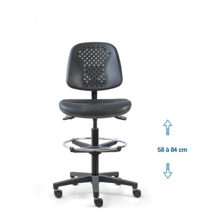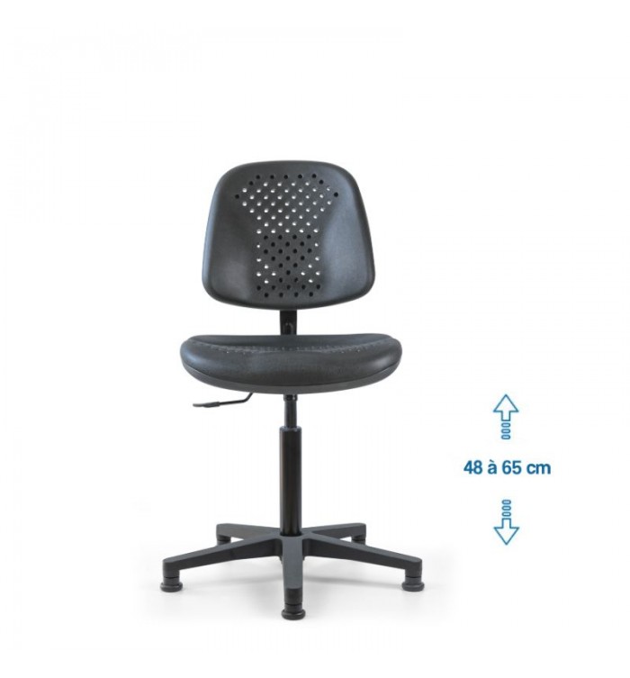 Conçu pour s'adapter à divers contextes professionnels, le siège d'atelier SWET est idéal pour les ateliers, bureaux et autres espaces de travail. Grâce à son revêtement en polyuréthane noir perforé, il garantit une résistance optimale, tout en étant anti-transpiration et facile à entretenir. Parfait pour des conditions de travail intensives, ce siège assure un confort durable.