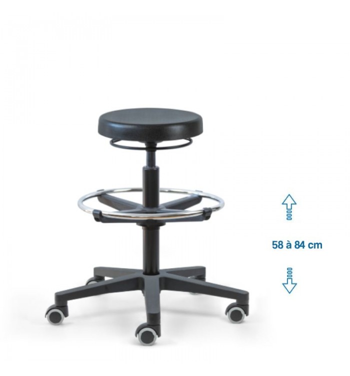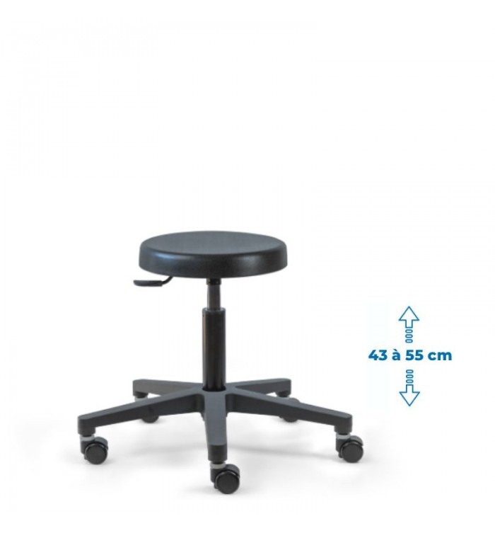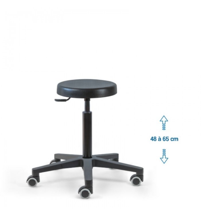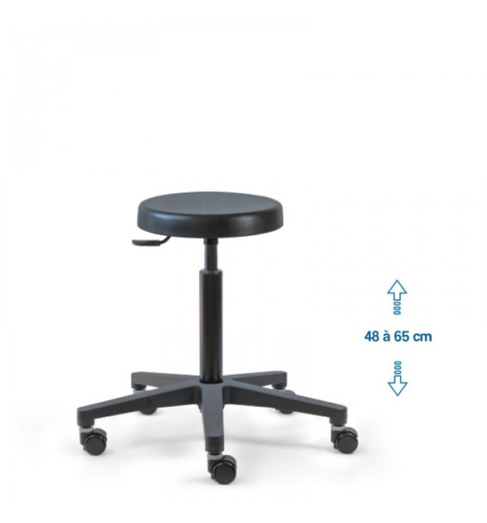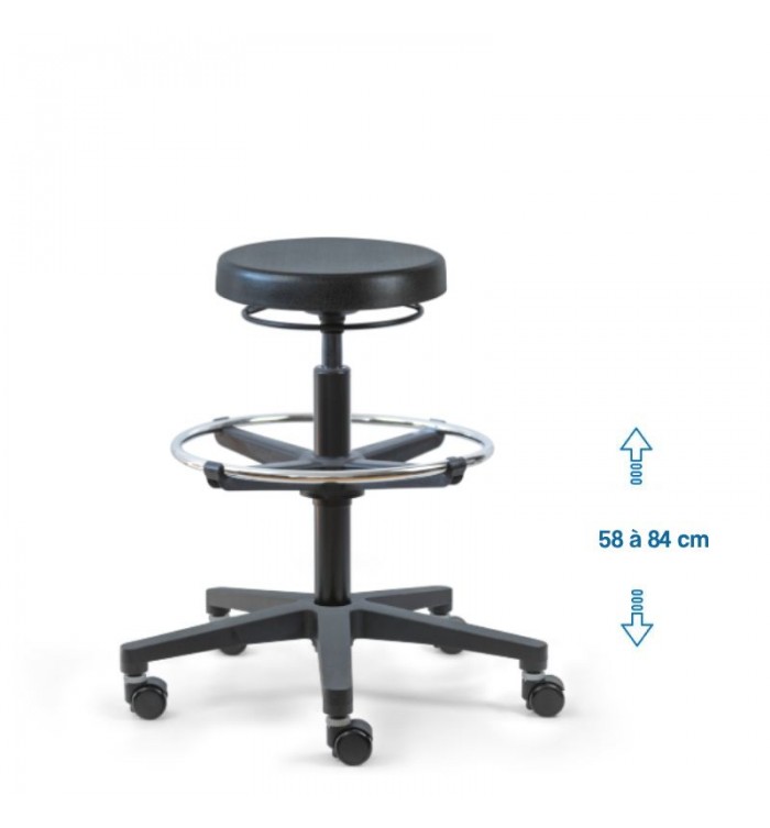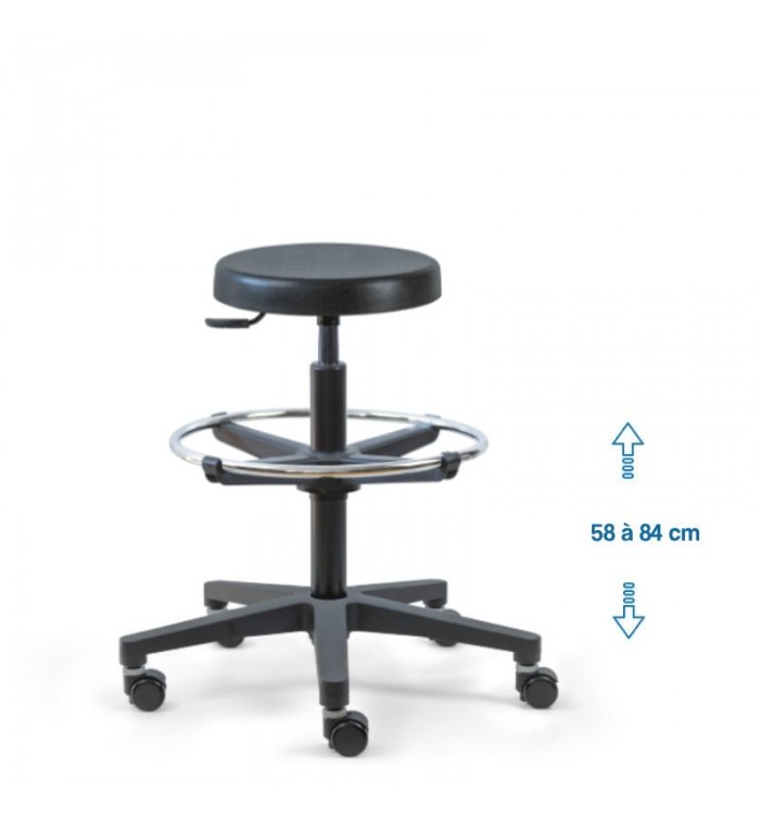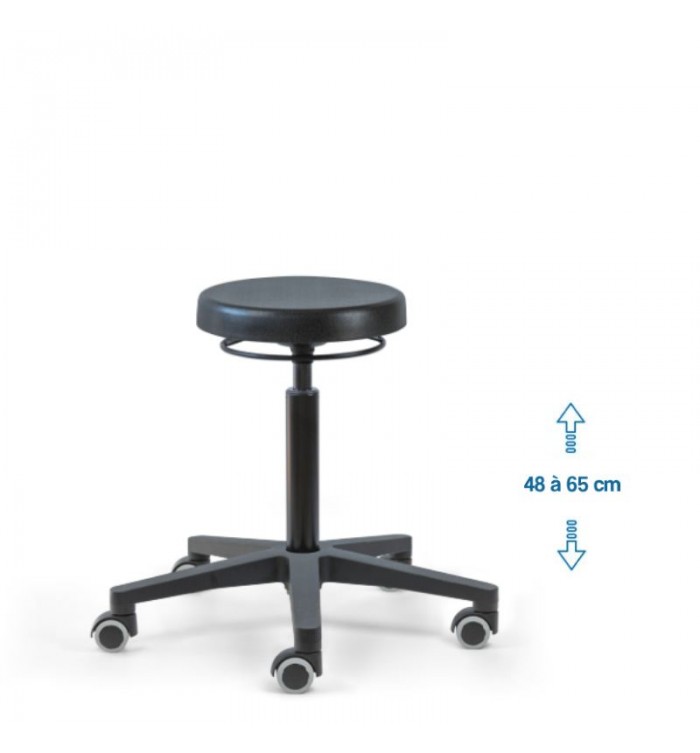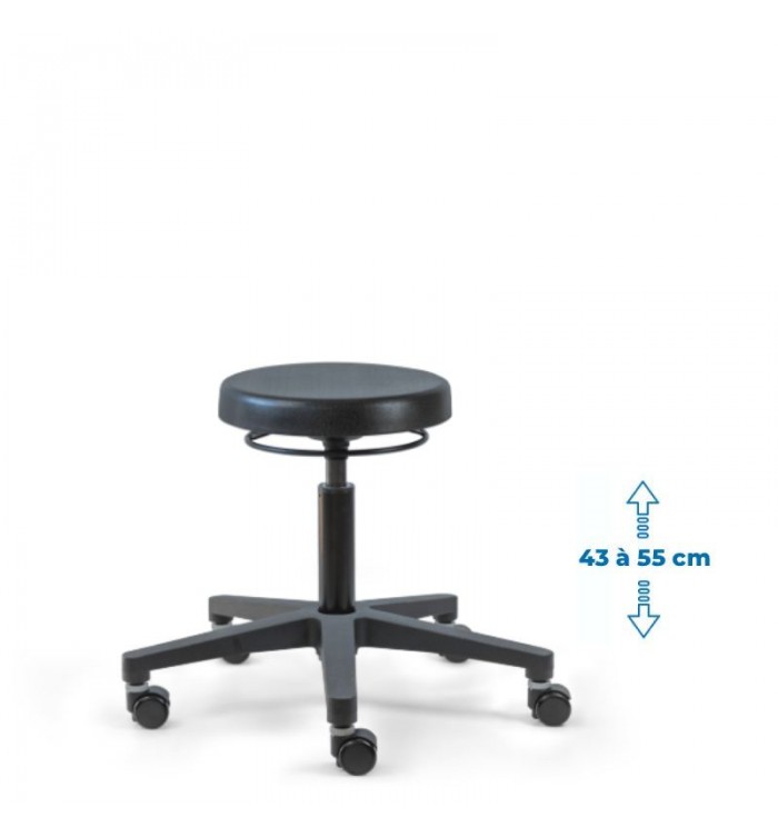 Ce tabouret est doté d'une assise ronde recouverte d'une mousse polyuréthane épaisse. Cette combinaison assure un confort optimal pour les longues heures de travail, réduisant la fatigue et améliorant la productivité.