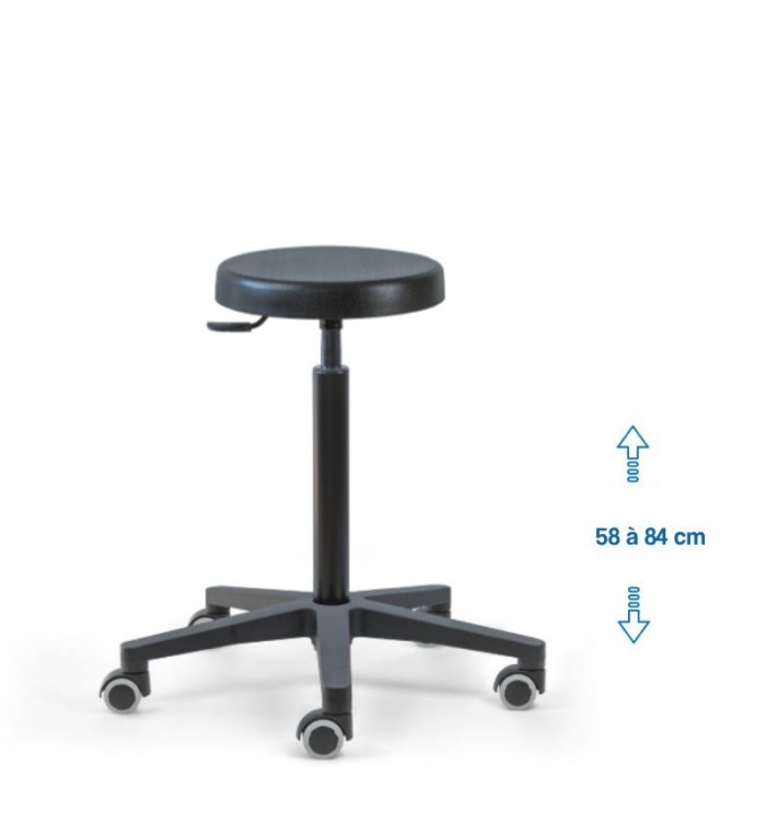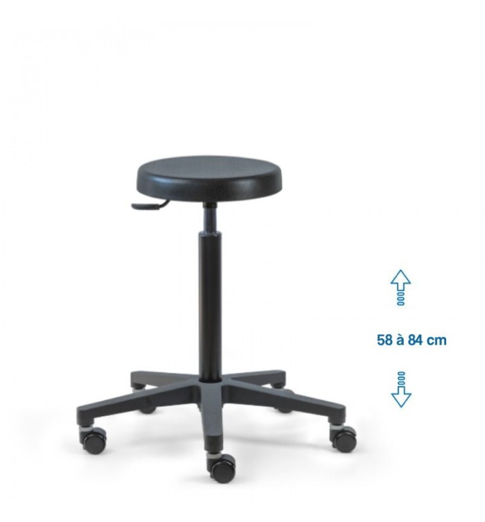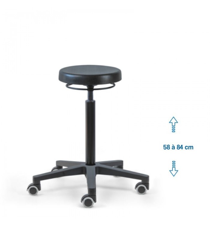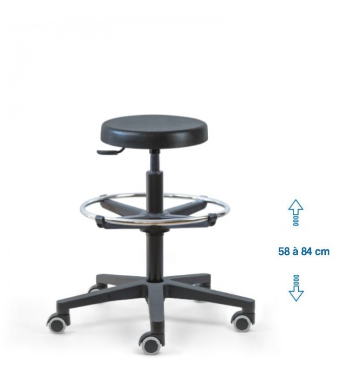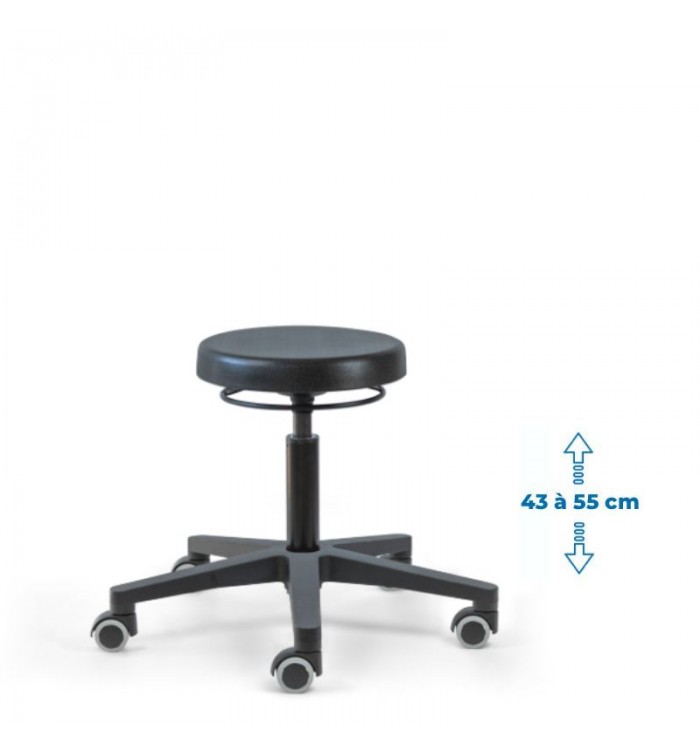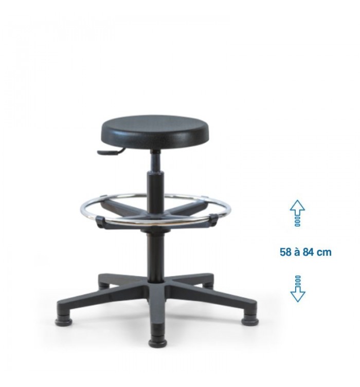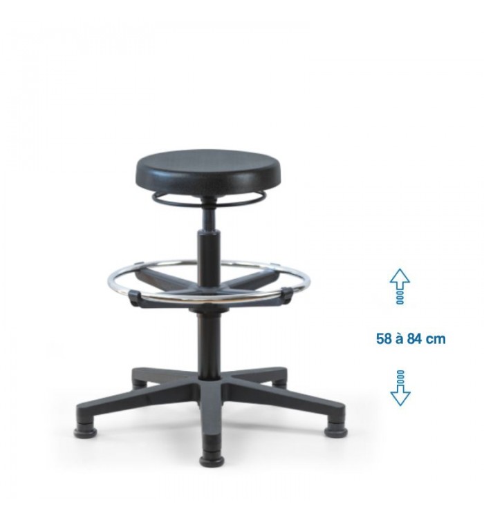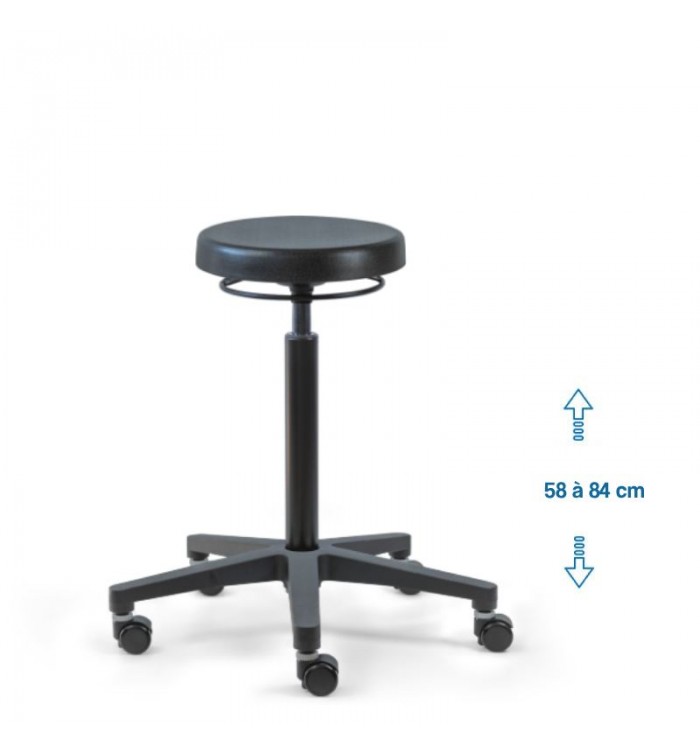 Ce tabouret est doté d'une assise ronde recouverte d'une mousse polyuréthane épaisse. Cette combinaison assure un confort optimal pour les longues heures de travail, réduisant la fatigue et améliorant la productivité.