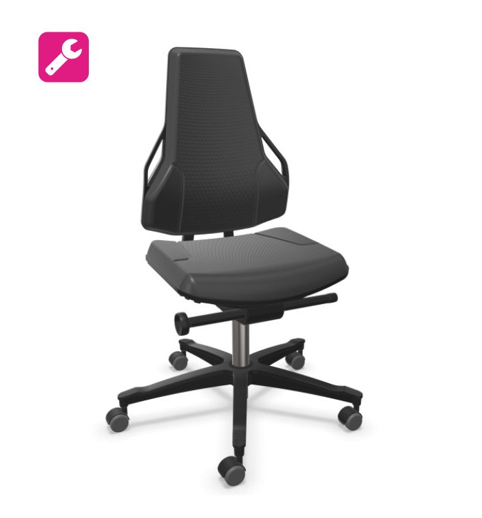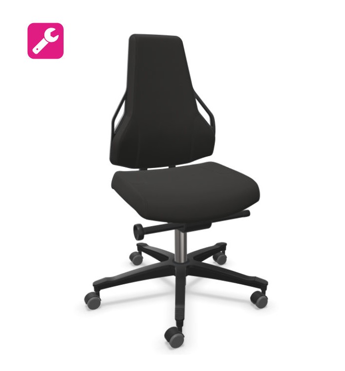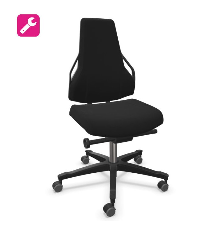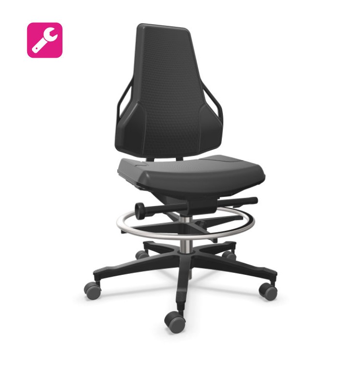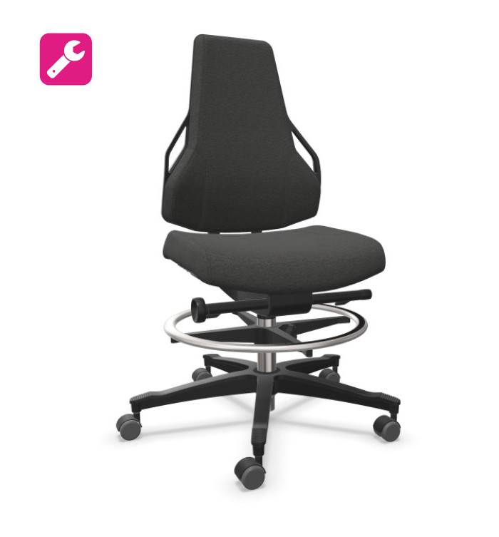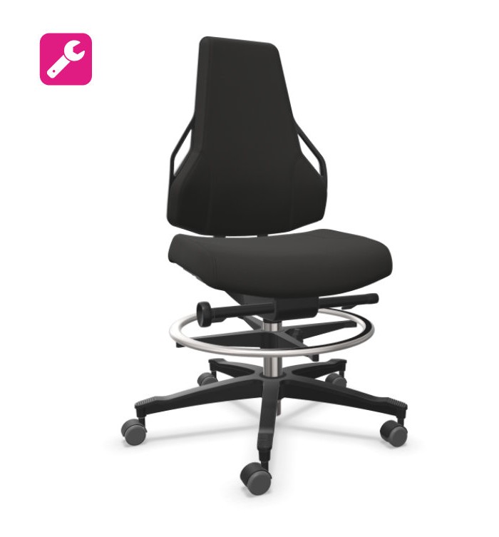 Siège technique idéal en utilisation dans les domaines de la production ou d'atelier. Au choix: hauteur standard de 46 à 62 cm / version haute avec repose-pieds 62-87 cm. Revêtement en tissu ou en polyuréthane noir.