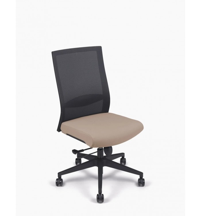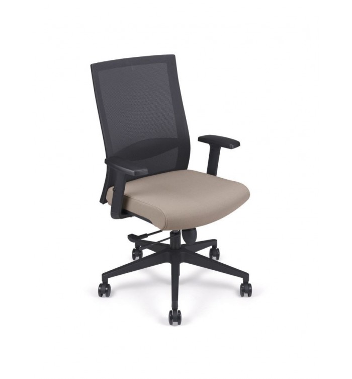 Mécanique synchrone (mouvement synchronisé assise et dossier avec tension réglable). Réglable en hauteur par lift pneumatique. Assise tissu et dossier résille noire. Translation de l’assise. Appui lombaire réglable en hauteur Garantie 3 ans. Options possibles : accoudoirs – têtière résille.