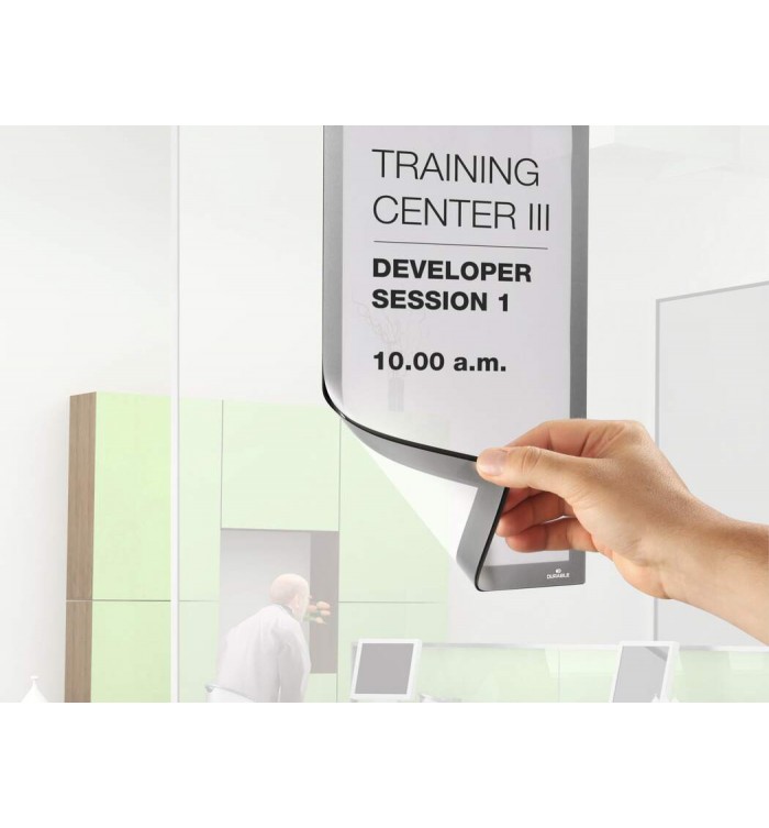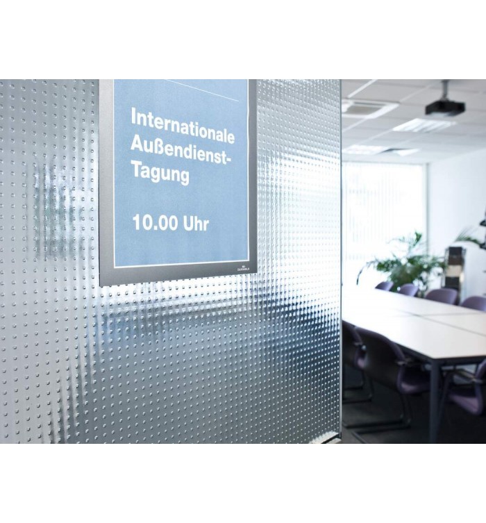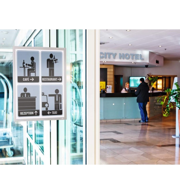 - Aspect identique du cadre des deux côtés sur surfaces vitrées, garantissant une lisibilité recto/verso.