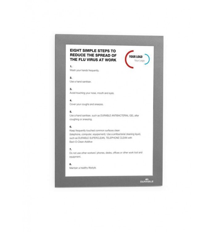 - Cadre d’affichage autocollant pour une fixation rapide sur toutes surfaces lisses et rigides, y compris les surfaces vitrées.