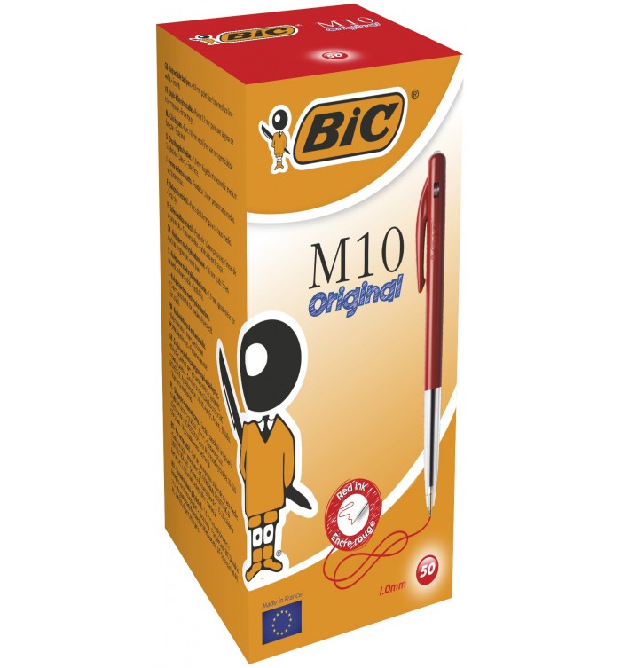 Avec son design iconique au look délicieusement rétro et son bouton-poussoir latéral, le stylo rétractable à pointe moyenne BIC M10 Original est un grand classique de la marque BIC. Ces stylos écrivent en rouge, couleur du stylo assortie à celle de l'encre. Grâce à leur clip emblématique, ils s'accrochent à toutes les poches. Gage de qualité, ils sont fabriqués en France, dans les usines BIC.