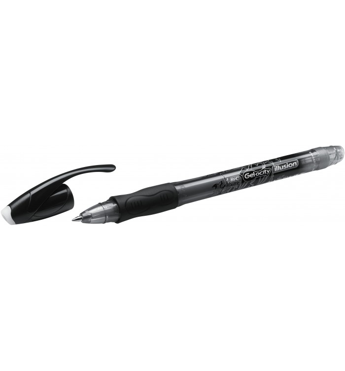 - Grâce à leur encre gel effaçable, ces stylos Gel-ocity Illusion s'effacent ni vu ni connu avec leur gomme-capuchon