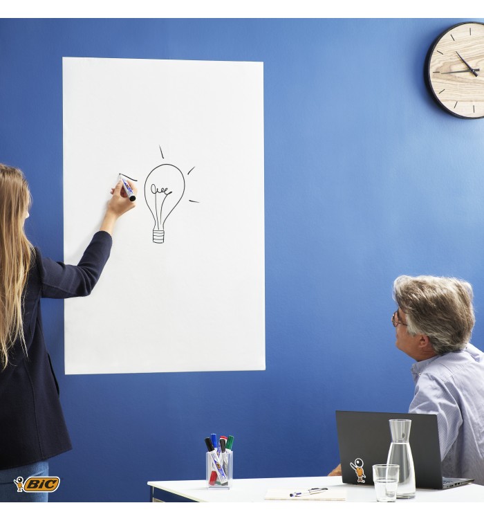 - Rouleau effaçable 67x100 cm : le rouleau BIC Velleda est une surface blanche adhésive effaçable à sec
