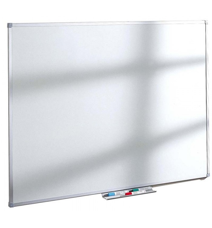 Tableau blanc magnétique en acier émaillé vitrifié. Cadre aluminium. Auget porte-marqueurs. Format: 900 x 1800 mm.