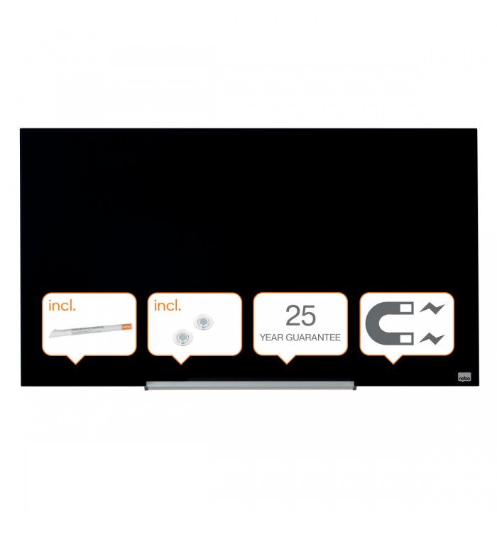 Tableau magnétique en verre, à l'aspect épuré et élégant, avec auget porte-marqueurs amovible. Système InvisaMount™ facilitant le montage avec des fixations soigneusement dissimulées derrière le tableau. La surface en verre du tableau blanc magnétique offre une excellente effaçabilité et une résistance extrême aux taches d'encre, traces de marqueur, rayures et bosses. Taille : 1000x560 mm.