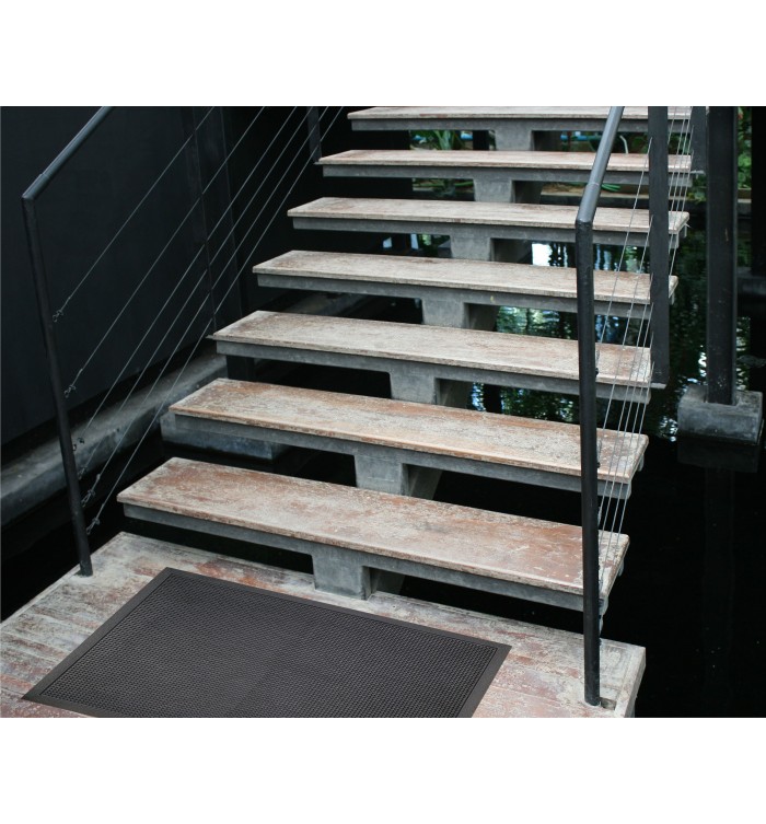 - Idéal en extérieur, ce tapis est adapté au fort trafic. Il s’installe parfaitement dans les entrées avec ou sans fosse pour tout type d’établissement.