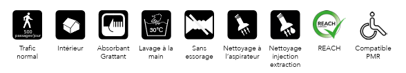Il est conçu pour les lieux n’excédant pas 500 passages journaliers. Ce tapis est donc idéal pour les entrées de salle de réunion, les entrées d’ascenseurs ou d’escaliers.