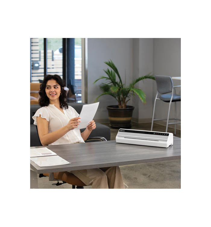 - Des capteurs permettent l'arrêt de la plastification en cas de mauvaises insertions, ce qui permet de retirer ou réaligner la pochette en toute sécurité