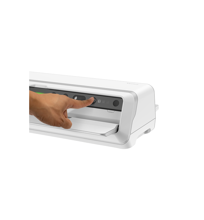 - L’AutoSense détecte l’épaisseur de la pochette et s’ajuste automatiquement aux réglages de plastification optimaux pour une utilisation simple