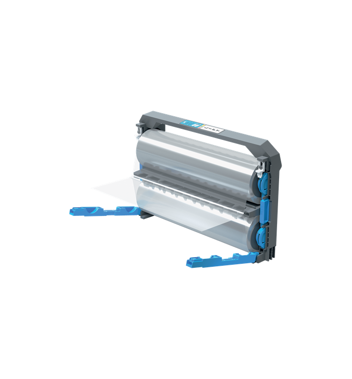 - La cartouche de 75 microns est facile à retirer et à recharger dans la plastifieuse Foton 30, ce qui permet de remplacer le rouleau de plastification sans effort et de gagner en efficacité.