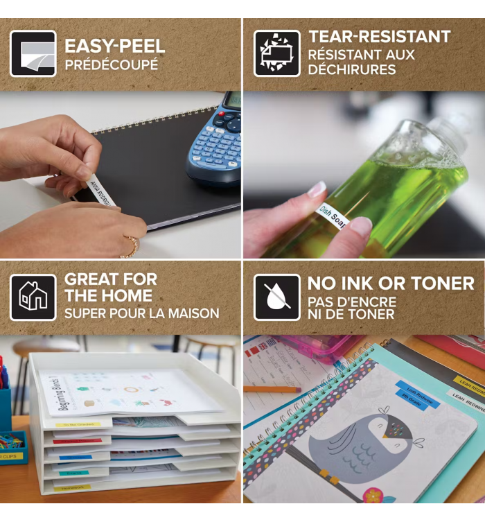 Petite, minimaliste et super portable, l’étiqueteuse manuelle DYMO LetraTag® 100H est l’appareil idéal pour votre maison. Elle imprime sur une grande variété d’étiquettes colorées, et ajoute des fonctions de texte populaires telles que plusieurs styles de polices, le soulignement, la mise en gras, la taille du texte et bien plus encore. Son affichage graphique vous permet de voir les effets de la police à l’écran, de sorte que vous savez exactement ce que vous imprimez à chaque fois. Avec le LetraTag® 100H, la création d’étiquettes est un jeu d’enfant.