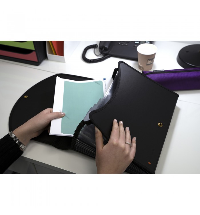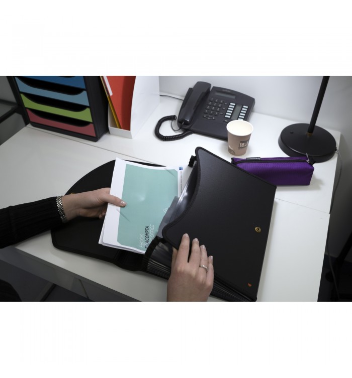 L'Exacase est un trieur valisette avec 13 compartiments, idéal pour classer ou transporter des documents perforés ou non perforés.