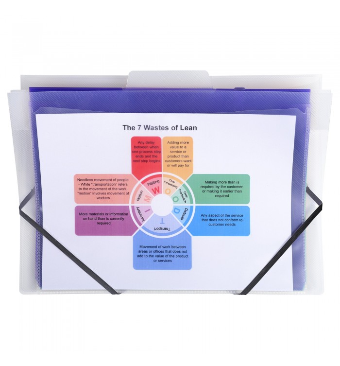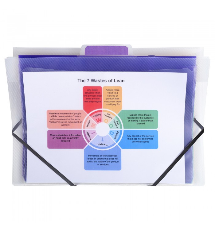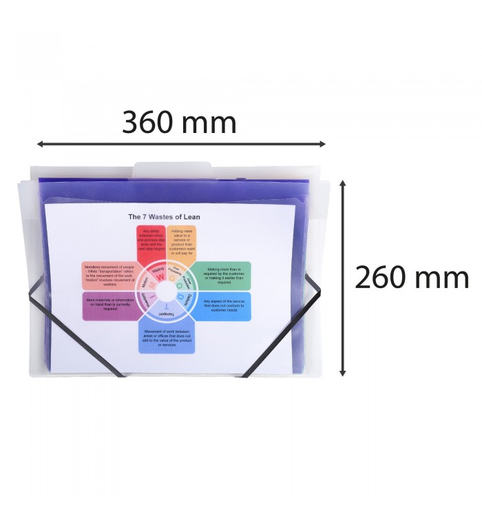Les compartiments sont composés de pochettes couleurs en plastique 2/10eme, détachables.